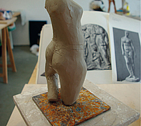 In dem Atelier in Anif entstehen Tonplastiken in unterschiedlichen Größen und Techniken. Diese Kunstwerke werden später, je nach Aufbau, gebrannt oder per Abgussform in Gips, Beton oder Bronze gegossen.